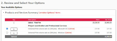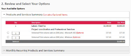 - Where enabled, directly change the quantity of items in the proposal to automatically update our system in case your requirements have changed since our last interaction.